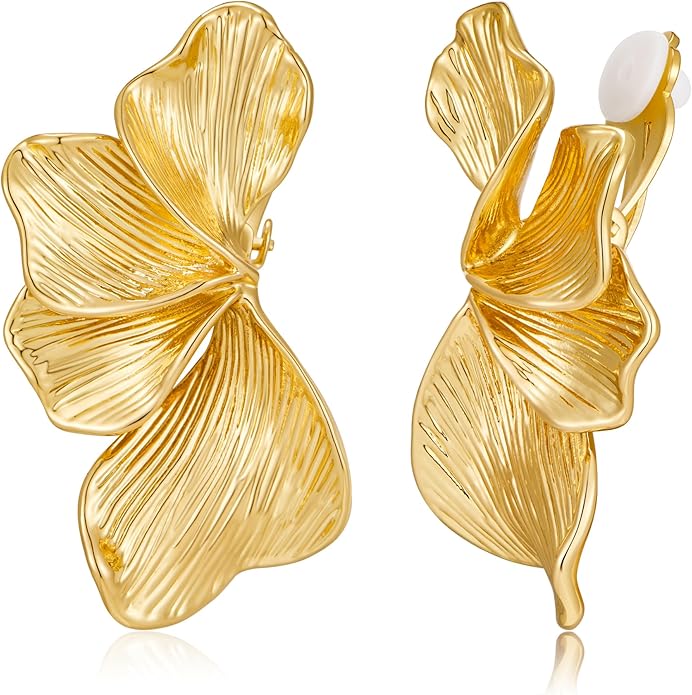 + Free ShippingZlaté objemné kvetinové náušnice s klipsovým zapínaním. Dramatický a luxusný vzhľad.